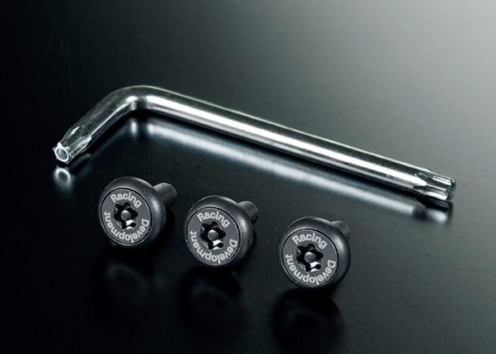 イタズラ防止にも効果ありのTRDロゴ入りナンバープレートボルト。
